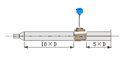 若傳感器安裝點(diǎn)的上游有>15°漸擴(kuò)管,傳感器上游應(yīng)有不小于18D的等徑直管段,下游應(yīng)有不小于5D的等徑直管段。