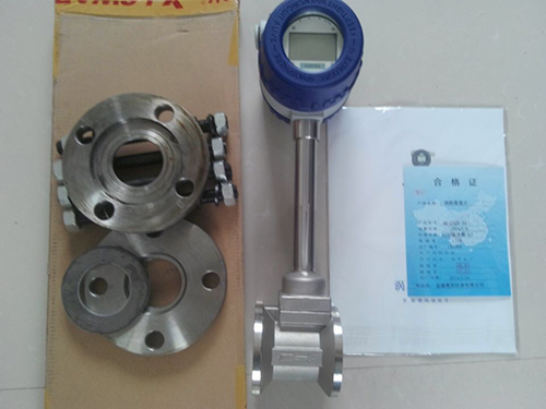 渦街流量計(jì)由法蘭卡裝式流量傳感器和顯示儀表組成。法蘭卡裝式流量計(jì)將專用法蘭焊接在工藝管道上,然后用螺栓、螺母將儀表固定在兩個(gè)法蘭之間。安裝簡單便捷,成本低。本公司提供專用法蘭,不需另行購買安裝法蘭。
