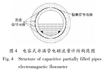 ②電容式非滿管污水廠出水用電磁流量計h。電容式非滿管污水廠出水用電磁流量計結(jié)構(gòu)簡圖如圖4所示。、檢測信號電極 發(fā)送信號電