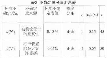 輸入量Vi相對不確定度Urei(Vi)不確定度主要來源于氣體流量標準裝置的測量誤差,其不確定度采用B類方法評定。